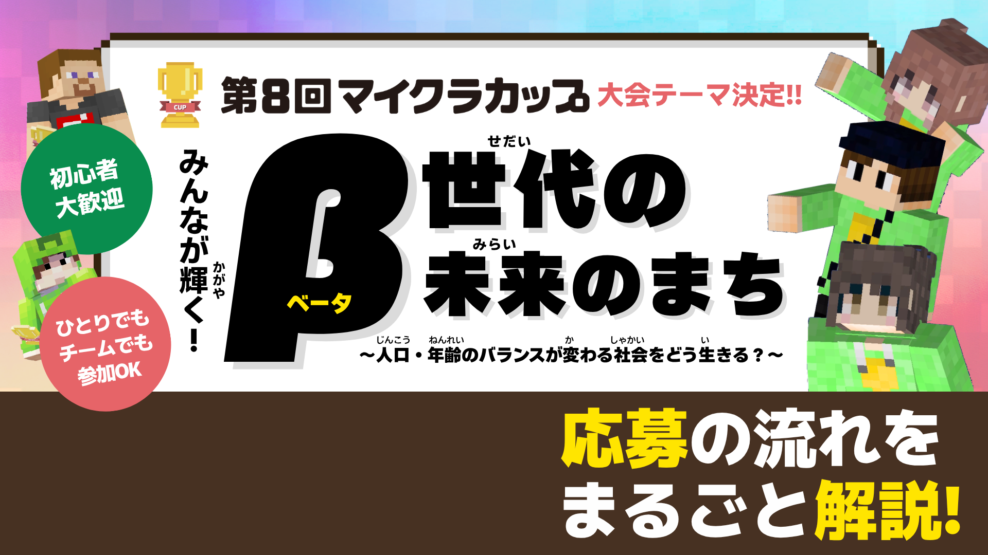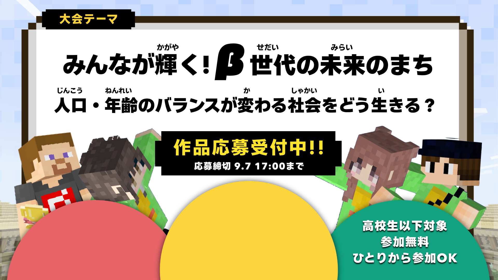 高校生以下の子どもたちが「教育版マインクラフト(Minecraft Education)」を使って、大会テーマに沿った作品をつくるデジタルものづくりの大会です。