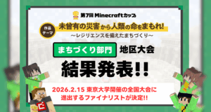 Minecraftカップとは、高校生以下の子ども達がマインクラフトを使ってデジタルものづくりに挑戦する大会です。 今年のテーマは、「未曾有の災害から人類の命をまもれ!〜レジリエンスを備えたまちづくり〜」 たてもの部門 … 続きを読む 第7回Minecraftカップまちづくり部門地区大会 結果発表