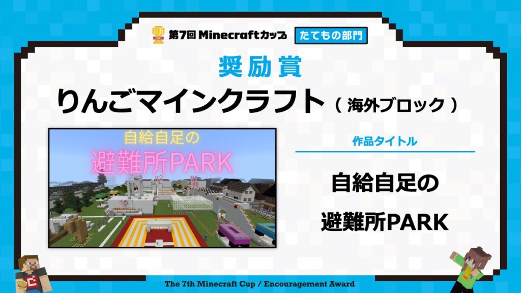 たてもの部門の表彰式は、2月15日に東京大学で行われる「第7回Minecraftカップ まちづくり部門全国大会・表彰式」と合わせて行います。