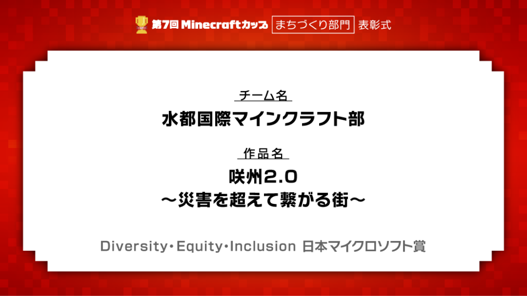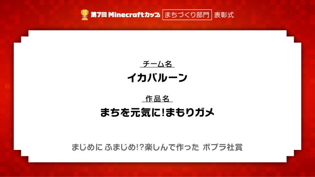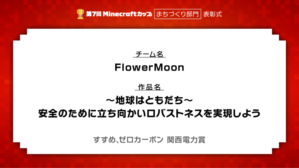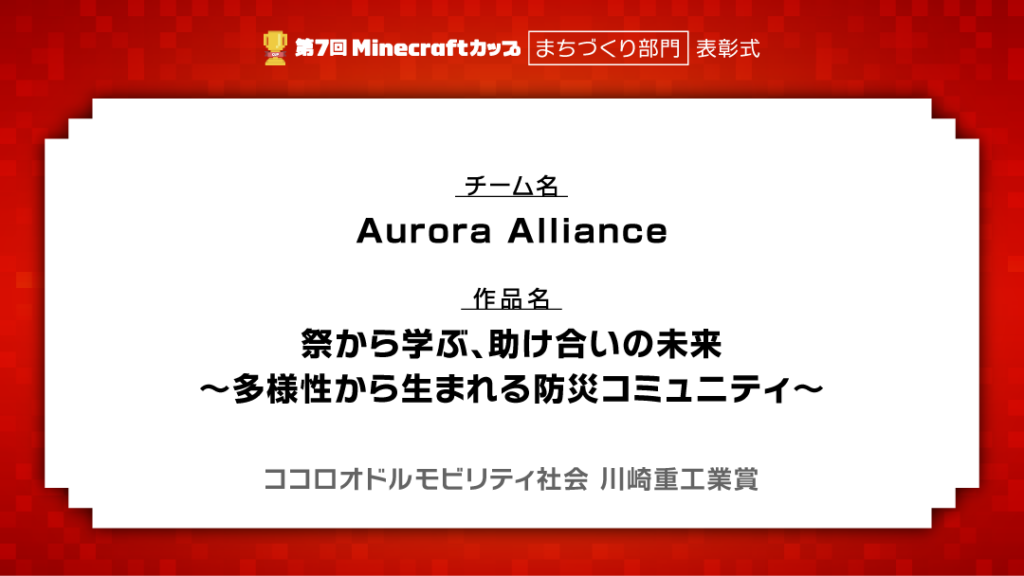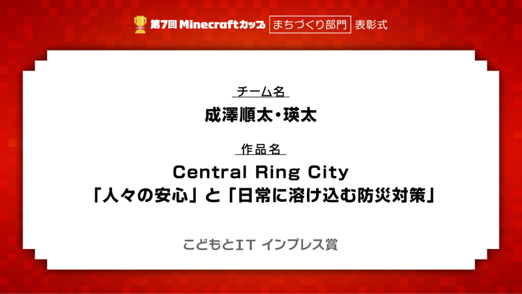 そして、Minecraftカップから贈られる「総合賞」と、大会パートナーから贈られる「特別賞」が決定しました。