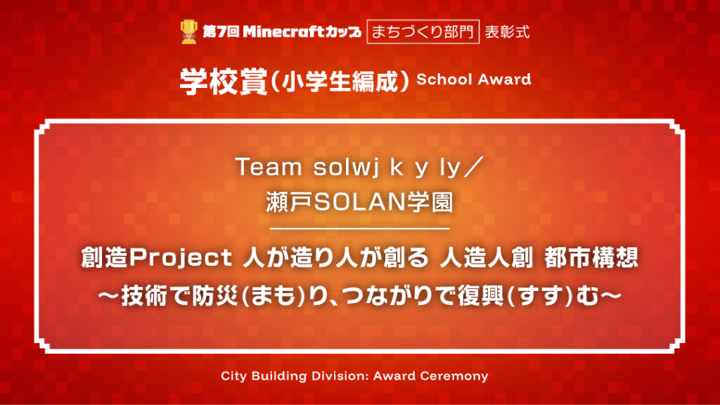 創造Project 人が造り人が創る 人造人創 都市構想 ~技術で防災(まも)り、つながりで復興(すす)む~ / Team solwj k y ly/瀬戸SOLAN学園