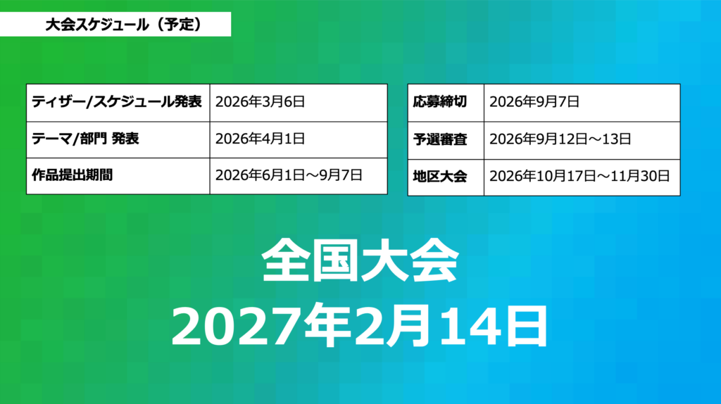 また、大会の開催にあたり、ご指導・伴走いただいた先生方や保護者の皆さま、大会を支えてくださった自治体・企業・パートナーの皆さま、そして会場やオンラインで応援してくださったすべての皆さまに、あらためて深く感謝申し上げます。