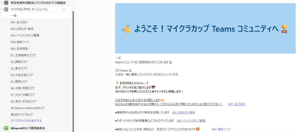 マイクラカップでは、保護者・指導者・大会関係者向けのオンラインTeamsサポーターコミュニティを運営しています。