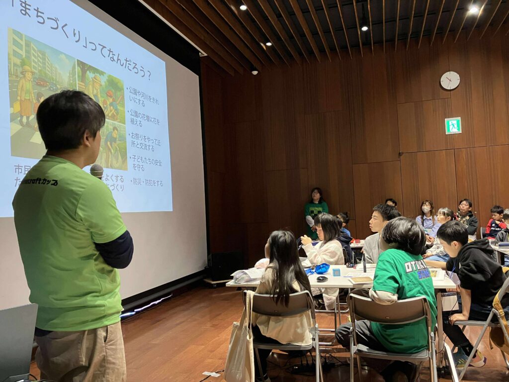 2024年度開催の第6回Minecraftカップ全国大会にて、最優秀賞を受賞したチーム「弘前高校メディアクリエイト同好会」の作品ワールドを活用し、子どもたち自身の視点から2055年、未来の弘前駅前を考え、形にするワークショップを行いました。