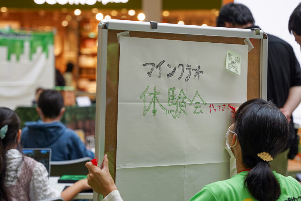 「あ!マイクラだ!」と見つけて声をかけてくれる親子連れの方々や、マイクラが描かれた洋服を着たお子さんなど、多くの方にご参加いただきました。