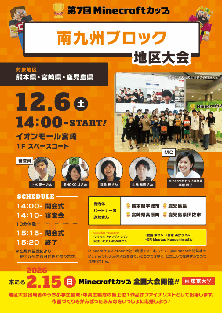 12月6日に「イオンモール宮崎」で、第7回Minecraftカップ まちづくり部門地区大会 南九州ブロックを開催しました!