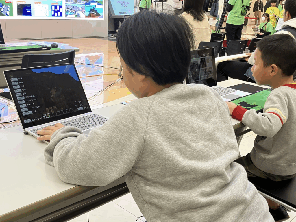 10:00〜13:00には、パソコンを使った教育版マインクラフト体験会を開催しました。