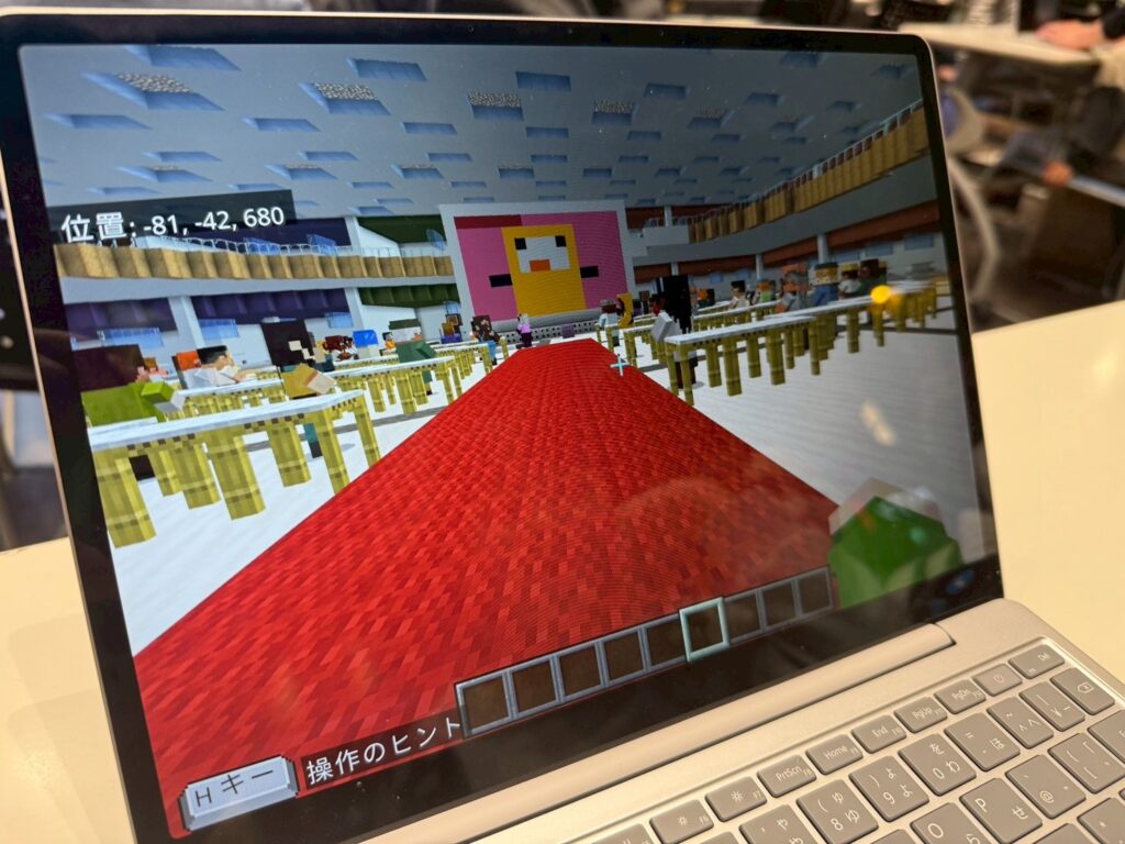 第7回Minecraftカップまちづくり部門 東北ブロック地区大会で最優秀賞に輝いた小学生編成チームの作品を紹介すると、会場からは「すごーい!」と驚きの声が挙がっていました。