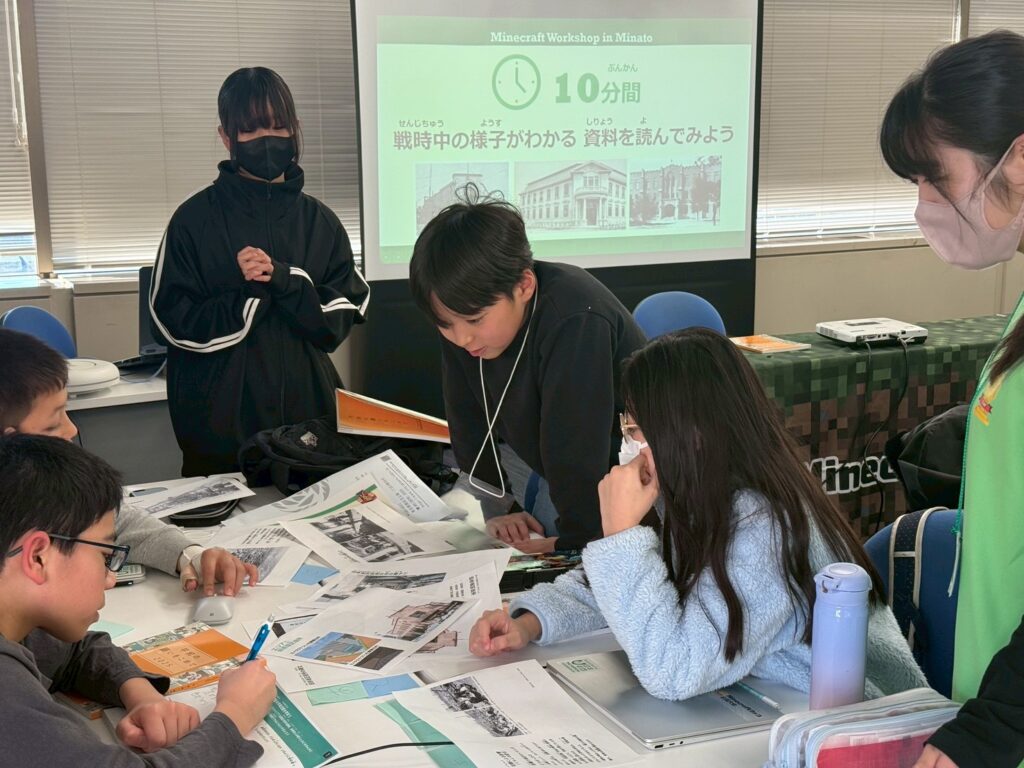 港区の戦争の歴史や当時の暮らしについて学び、それをMinecraftで再現するワークショップを実施しました。