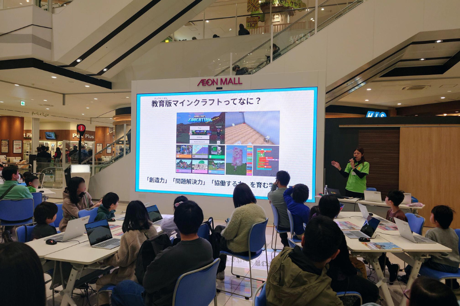埼玉県上尾市にあるイオンモール上尾にて「教育版マインクラフト体験会」を開催しました