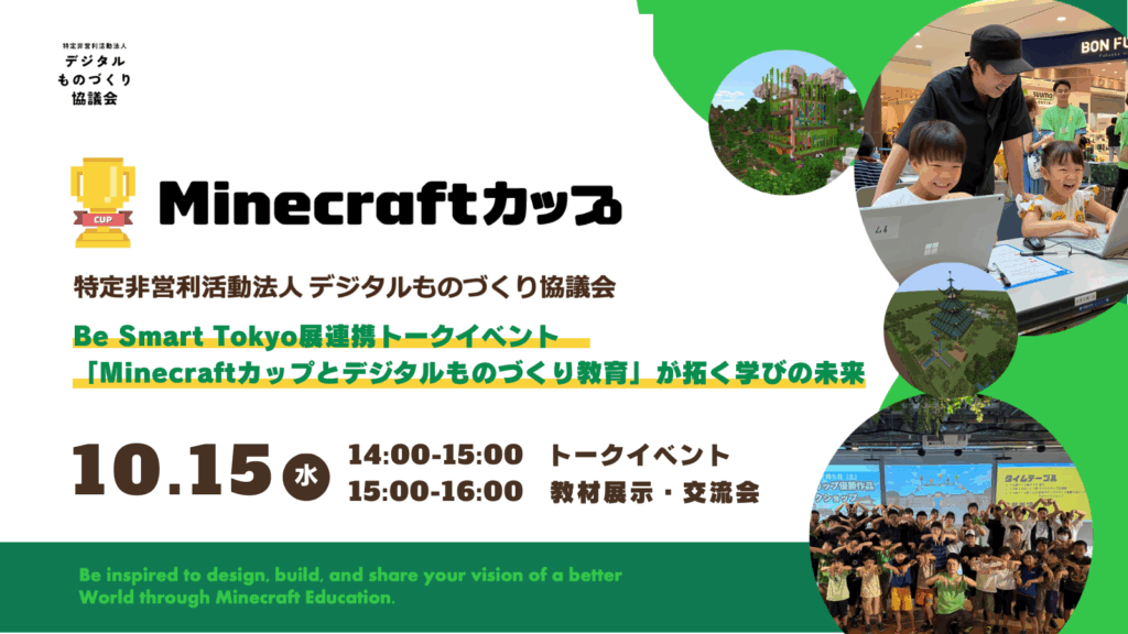 10月15日に東京都「DNPプラザ」にて、Be Smart Tokyo展連携トークイベント「Minecraftカップとデジタルものづくり教育」が拓く学びの未来 を開催します