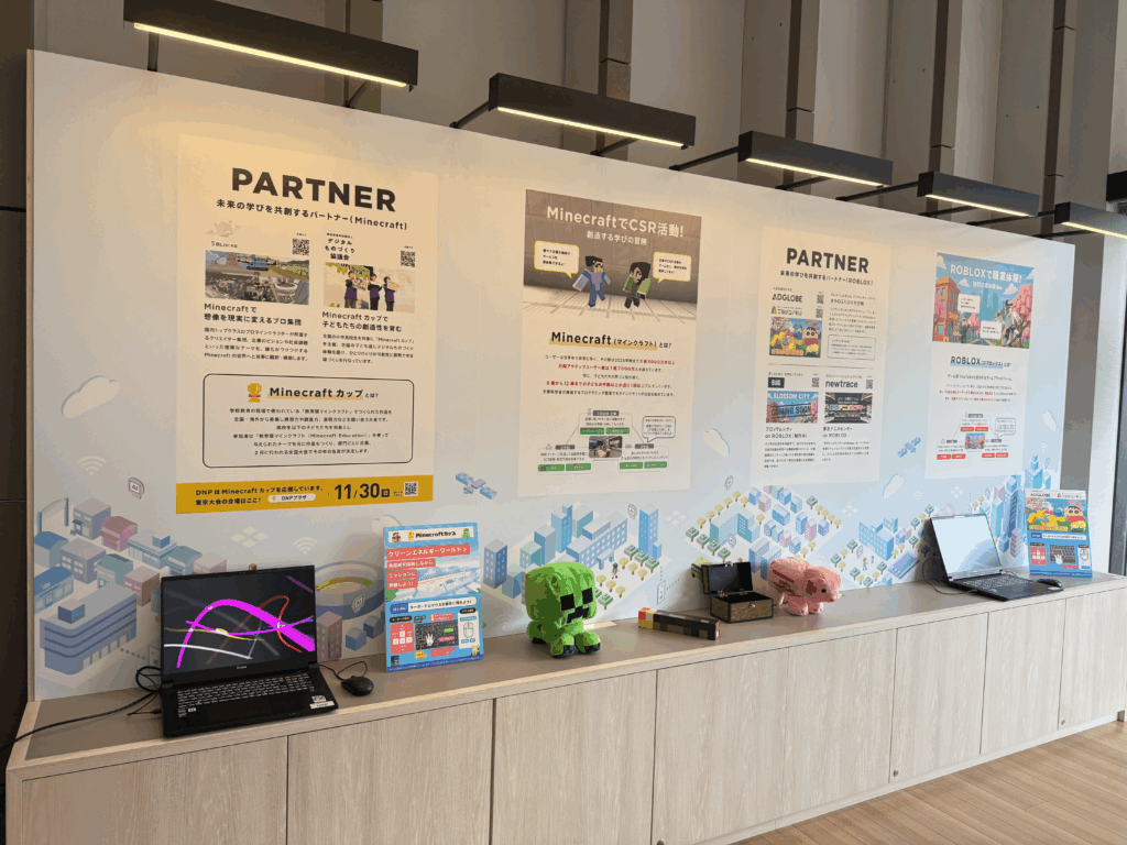 Roblox、Minecraftなどのゲーム活用教育を実際に体験できるコーナーです。ゲーム活用教育はデジタルネイティブ世代に親しみやすく、主体的学びを促す効果が期待されています。