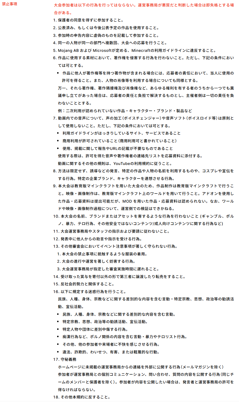 同様に、要項にある禁止事項を守っていただけない場合も修正していただきます。